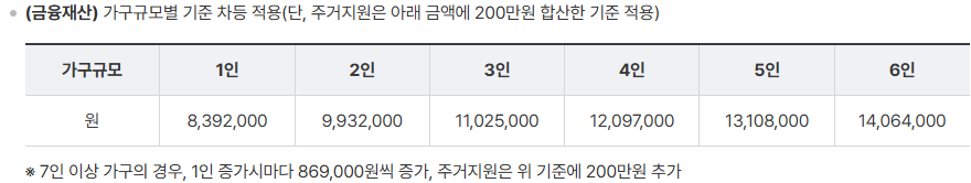 • 지원액: 월 가구원에 따라 최대 248만 원