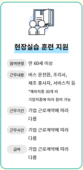 | 인턴십 | 만 60세 이상 | 월 45만 원 | 기업기준 |