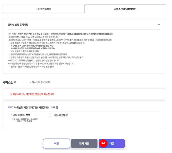 직접 아동 정보를 입력하는 건 불가하며, 지정 기관을 통해 간접 신청해야 합니다.