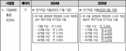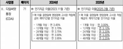 아래는 2024년과 2025년 기준 디딤씨앗통장의 이율 비교입니다.