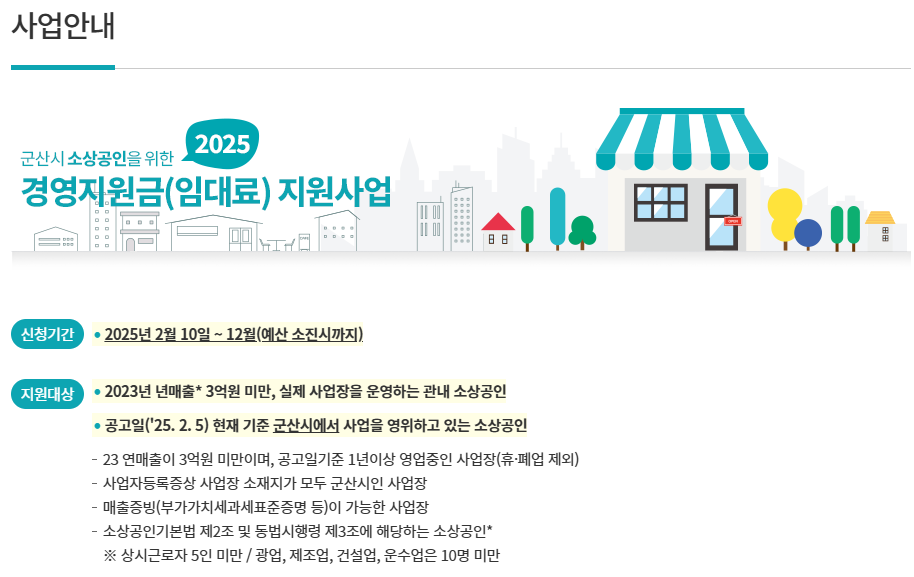 • 단, 일정 기간 이상 영업 중인 경우로 제한하는 지자체도 있음