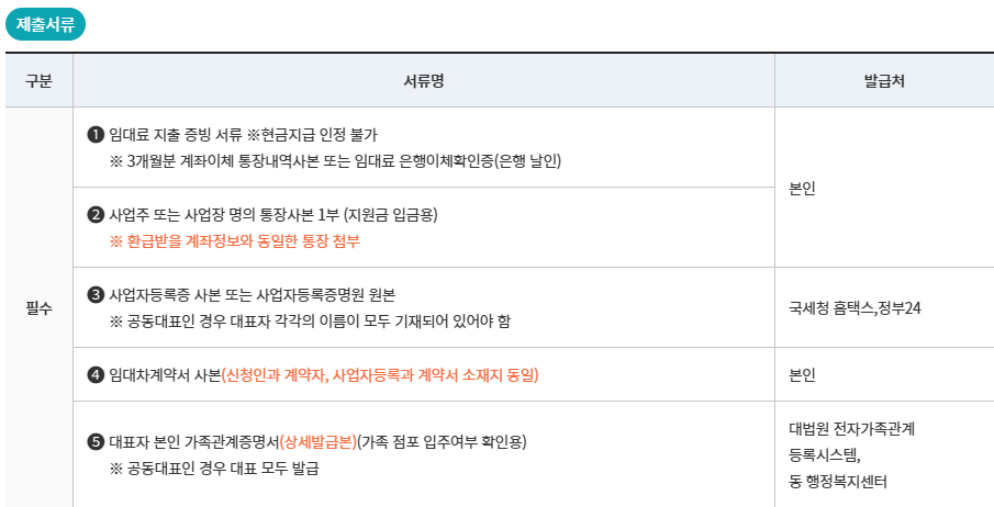 - 임대료 납부 증빙 자료 필수 (계좌이체 내역, 세금계산서 등)
