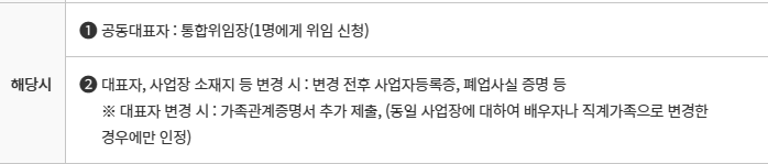 • 사업자등록증 주소 = 임대차 계약서 주소 동일해야 함