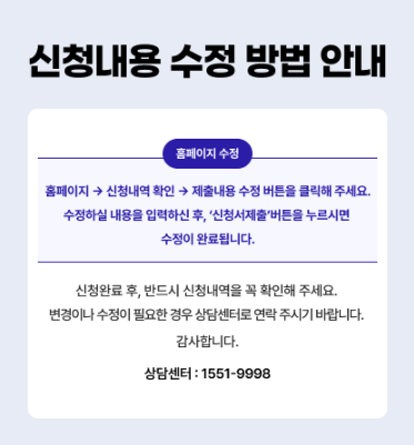 수정이 완료되면 반드시 신청내역을 다시 확인해 주세요.