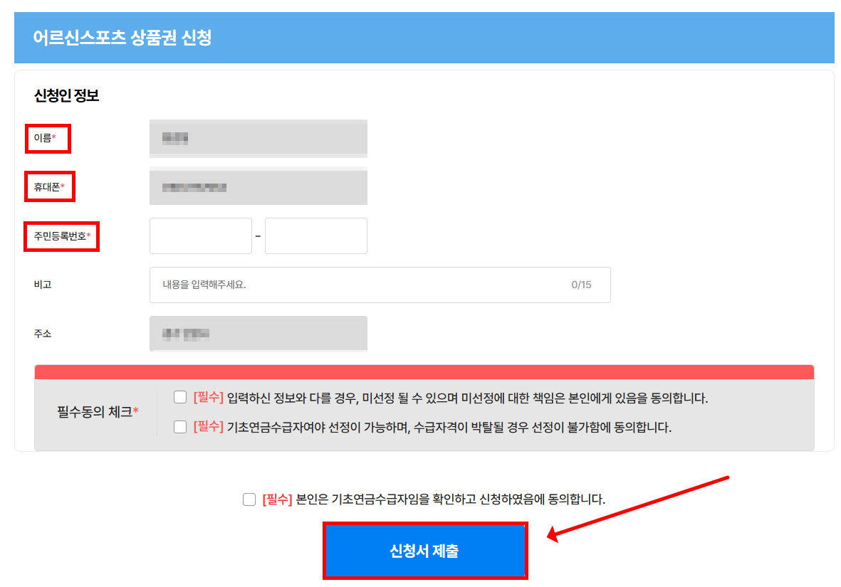 인증절차를 걸쳐 신청서를 제출해주시면 됩니다.