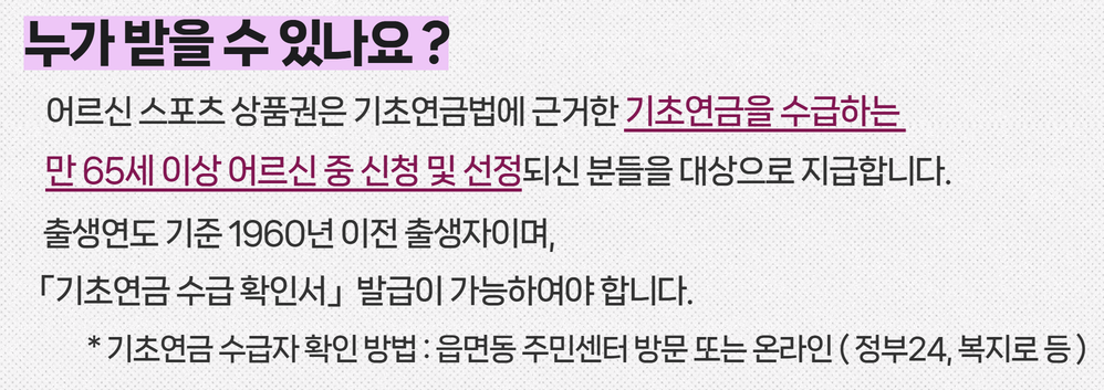 | 대상 | 만 65세 이상, 기초연금 수급자 |