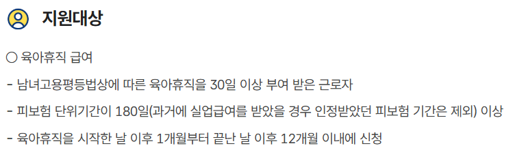 • 신청 기한: 육아휴직 시작일 이후 1개월부터 종료 후 12개월 이내에 신청해야 합니다.