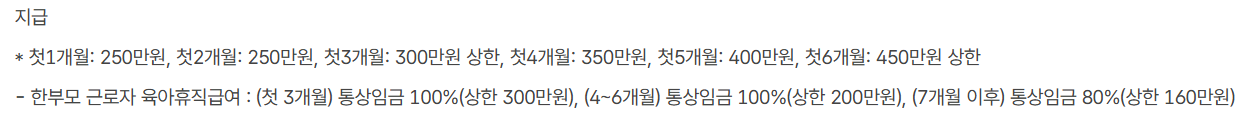 • 기존의 사후지급금 제도가 폐지되어, 육아휴직 중 매월 전액을 수령할 수 있습니다.