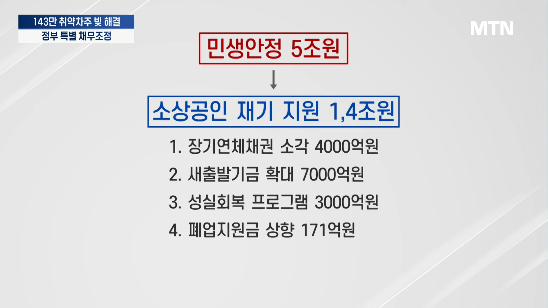 • 새출발기금: 저소득 소상공인 대상 최대 90% 원금 감면 + 최장 20년 분할상환