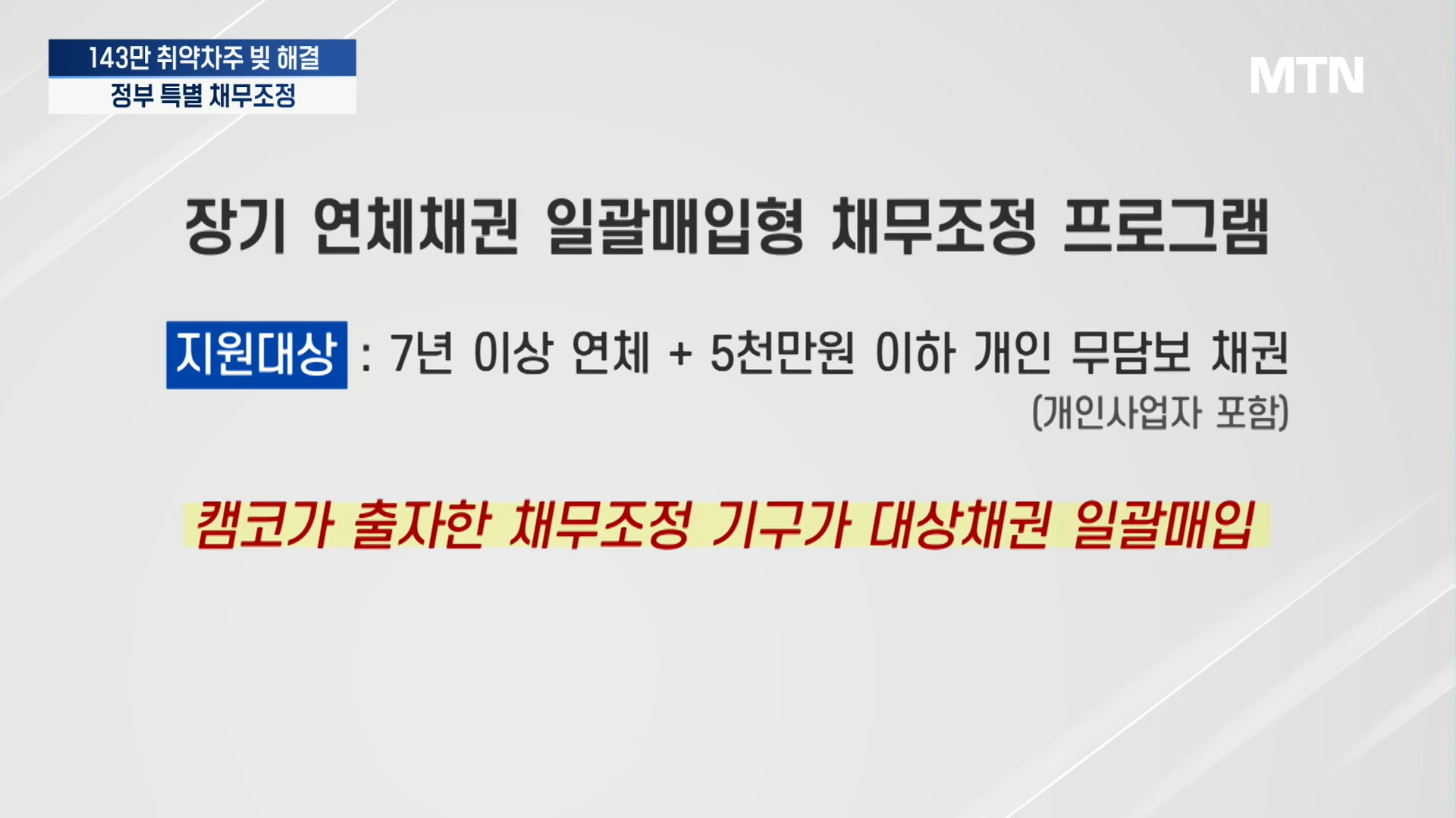 • 113만 명이 혜택 대상, 총 채권 규모는 약 16조 4천억 원