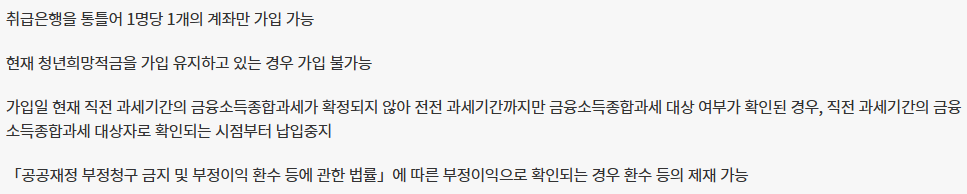 아래에서 청년도약계좌 가입 조건에 충족하는지