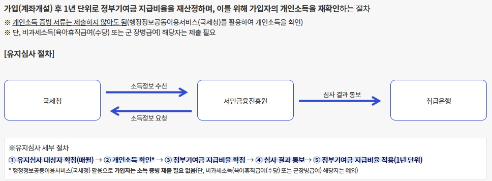 - 부정 수급 시 정부 기여금 전액 환수 및 제재 부과 가능