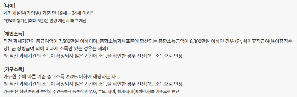 - 만 19세 이상 34세 이하 (병역 이행 기간 최대 6년까지 연령에서 제외)