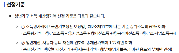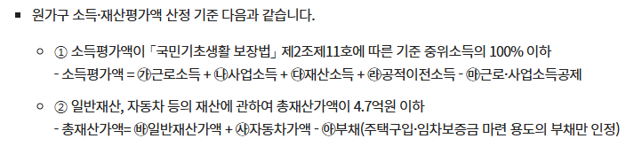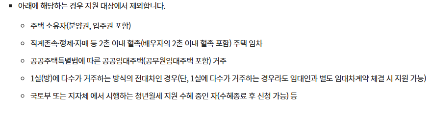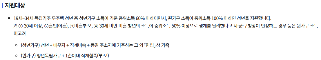 | 월세 기준 | 월 70만 원 이하 (서울 기준) |