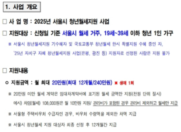 | 연령 | 만 19세 이상 ~ 39세 이하 (서울 기준) |